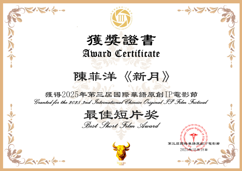 近日,第三屆國際華語原創(chuàng)IP電影節(jié)落下帷幕,我校東方電影與人文學(xué)院選送的2022級影視多媒體技術(shù)專業(yè)學(xué)生陳菲洋的短片作品《新月》脫穎而出,成功斬獲本屆電影節(jié) “最佳短片獎(jiǎng)”。